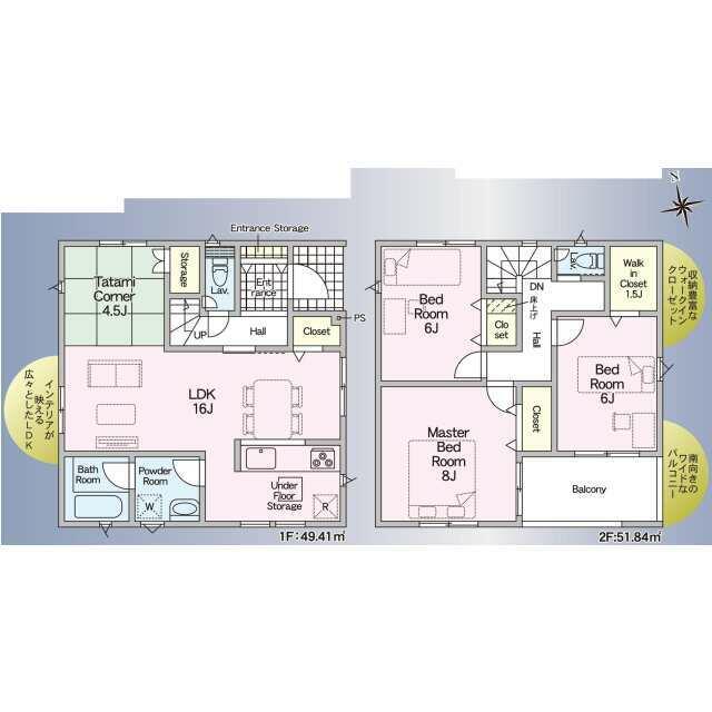 号棟番号:1号棟 :前面道路幅員制限 法第22条区域 建物面積に別途ルーフバルコニー約6.48平米有り 駐車場2台(車種による) |